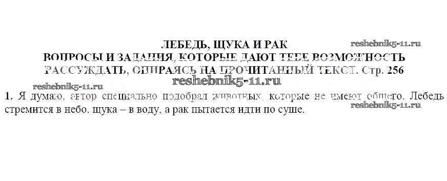 Решебник / часть 1 / Лебедь, рак и щука / Вопросы и задания, которые дают тебе возможность рассуждать, опираясь на прочитанный текст (стр. 256) / 1