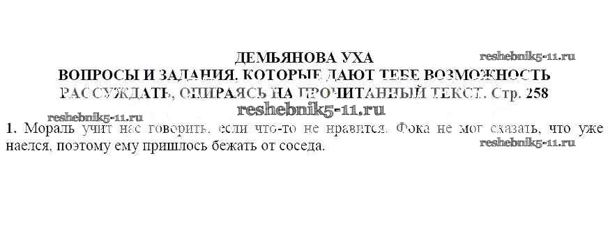 Решебник / часть 1 / Демьянова уха / Вопросы и задания, которые дают тебе возможность рассуждать, опираясь на прочитанный текст (стр. 258) / 1