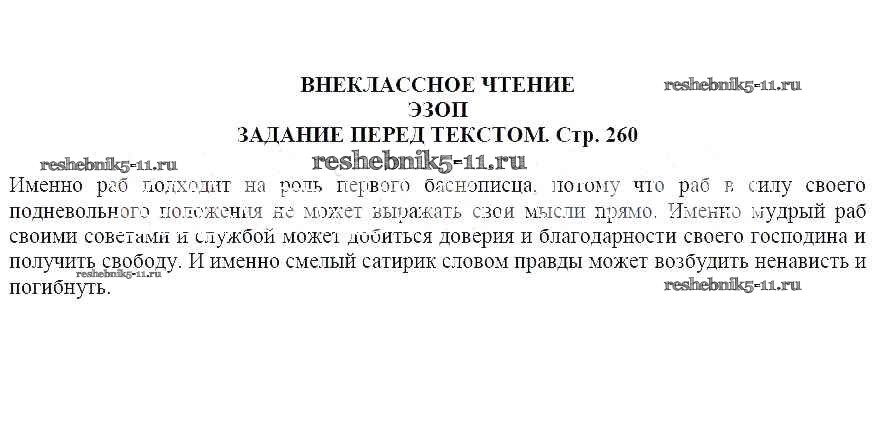 Готовая домашняя работа с ответами по Литературе за 5 класс Москвин Учебник Алгоритм успеха Часть 1, 2 Вентана-граф 2020 ФГОС - Эзоп Задание перед текстом (стр. 260)