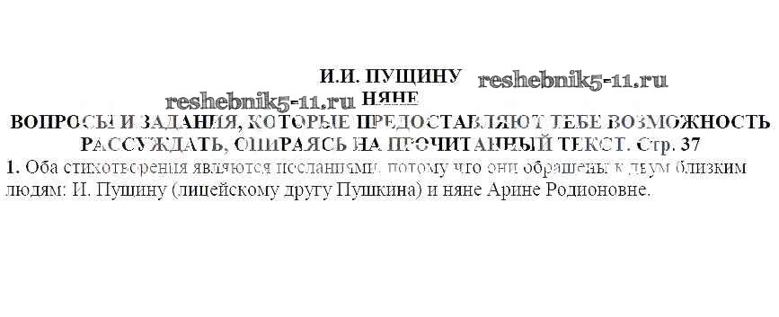 Решебник / часть 2 / И.И. Пущину. Няне / Вопросы и задания, которые дают тебе возможность рассуждать, опираясь на прочитанный текст (стр. 37) / 1