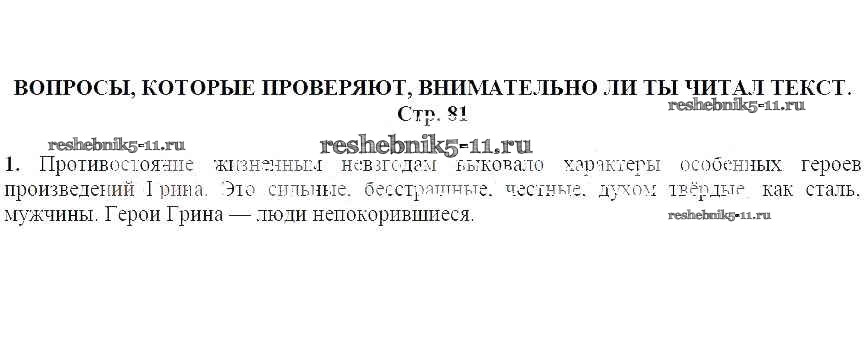 Решебник / часть 2 / Александр Грин / Вопросы и задания, которые дают тебе возможность рассуждать, опираясь на прочитанный текст (стр. 81) / 1