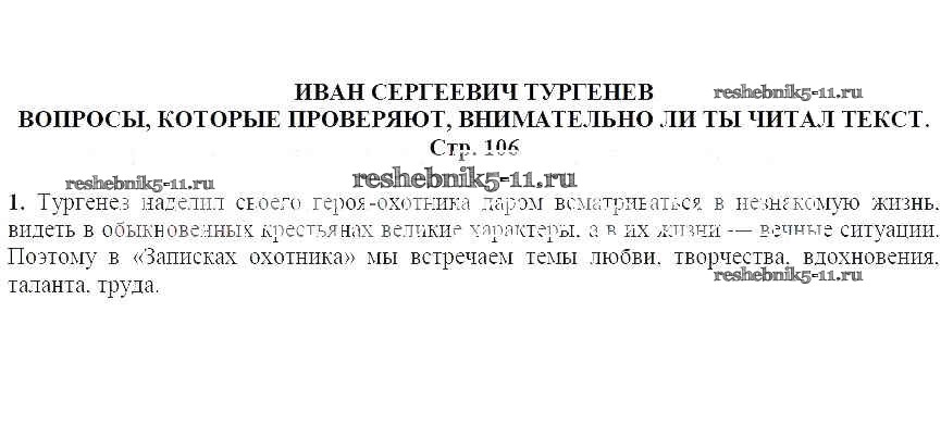 Решебник / часть 2 / Иван Сергеевич Тургенев / Вопросы, которые проверяют, внимательно ли ты читал текст (стр. 106) / 1