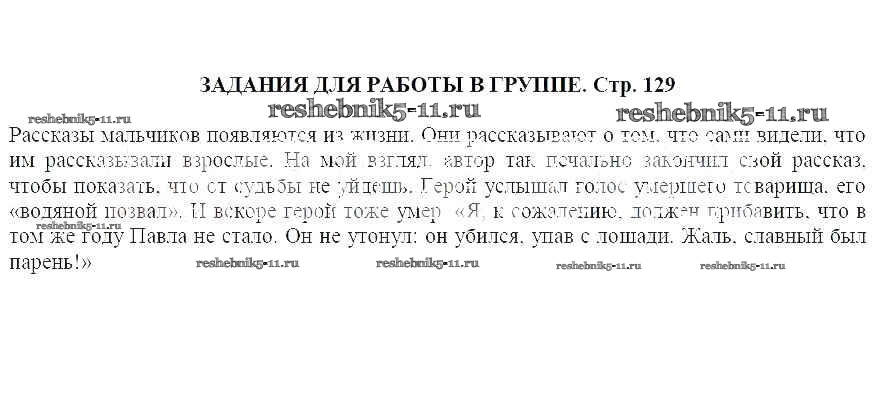Готовая домашняя работа с ответами по Литературе за 5 класс Москвин Учебник Алгоритм успеха Часть 1, 2 Вентана-граф 2020 ФГОС - Бежин луг Задания для работы в группе (стр. 129)