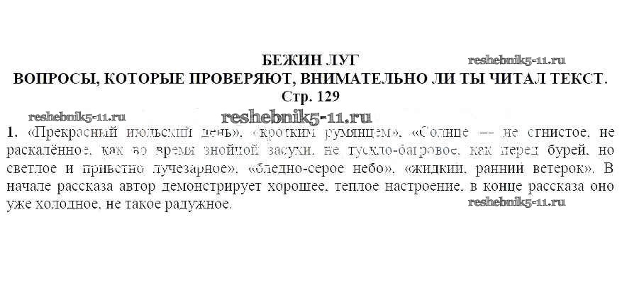 Решебник / часть 2 / Бежин луг / Вопросы, которые проверяют, внимательно ли ты читал текст (стр. 129) / 1