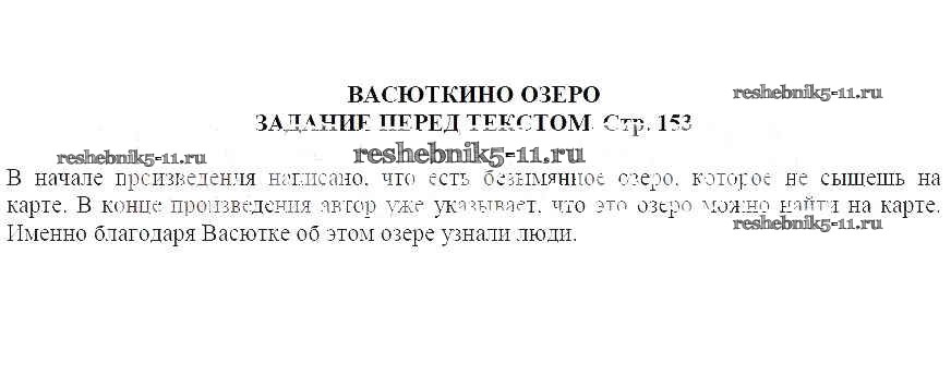 Литература за 5 класс Москвин Учебник Алгоритм успеха Вентана-граф Васюткино озеро Задание перед текстом (стр. 153)