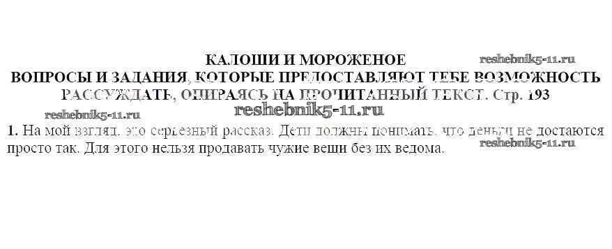 Решебник / часть 2 / Калоши и мороженное / Вопросы и задания, которые дают тебе возможность рассуждать, опираясь на прочитанный текст (стр. 193) / 1
