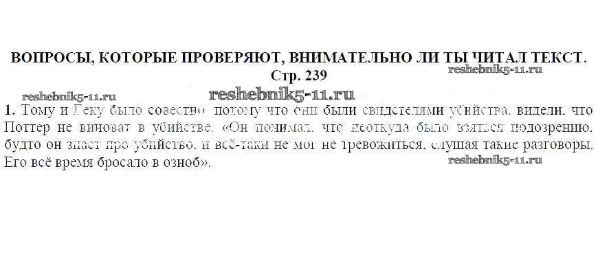 Литература за 5 класс Москвин Учебник Алгоритм успеха Вентана-граф Вопросы, которые проверяют, внимательно ли ты читал текст (стр. 239) 1