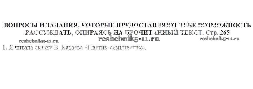 Решебник / часть 2 / Внеклассное чтение / Вопросы, которые проверяют, внимательно ли ты читал текст (стр. 265) / 1