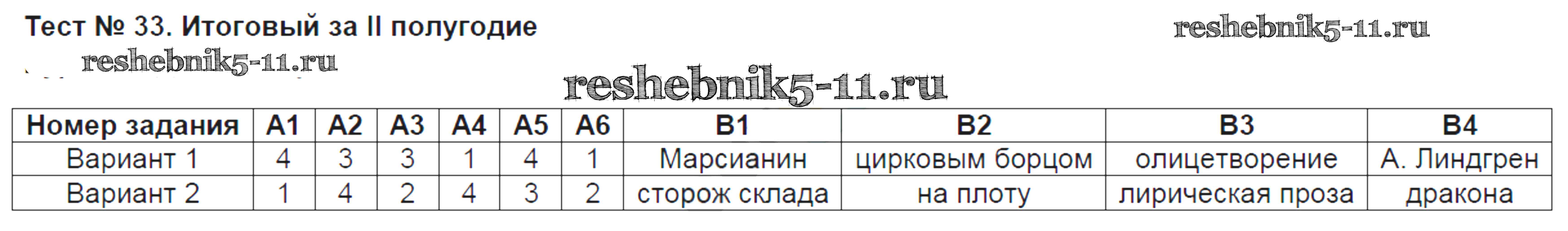 Готовая домашняя работа с ответами по Литературе за 5 класс Антонова Контрольно-измерительные материалы (КИМ) ВАКО 2017 ФГОС - Тесты 33