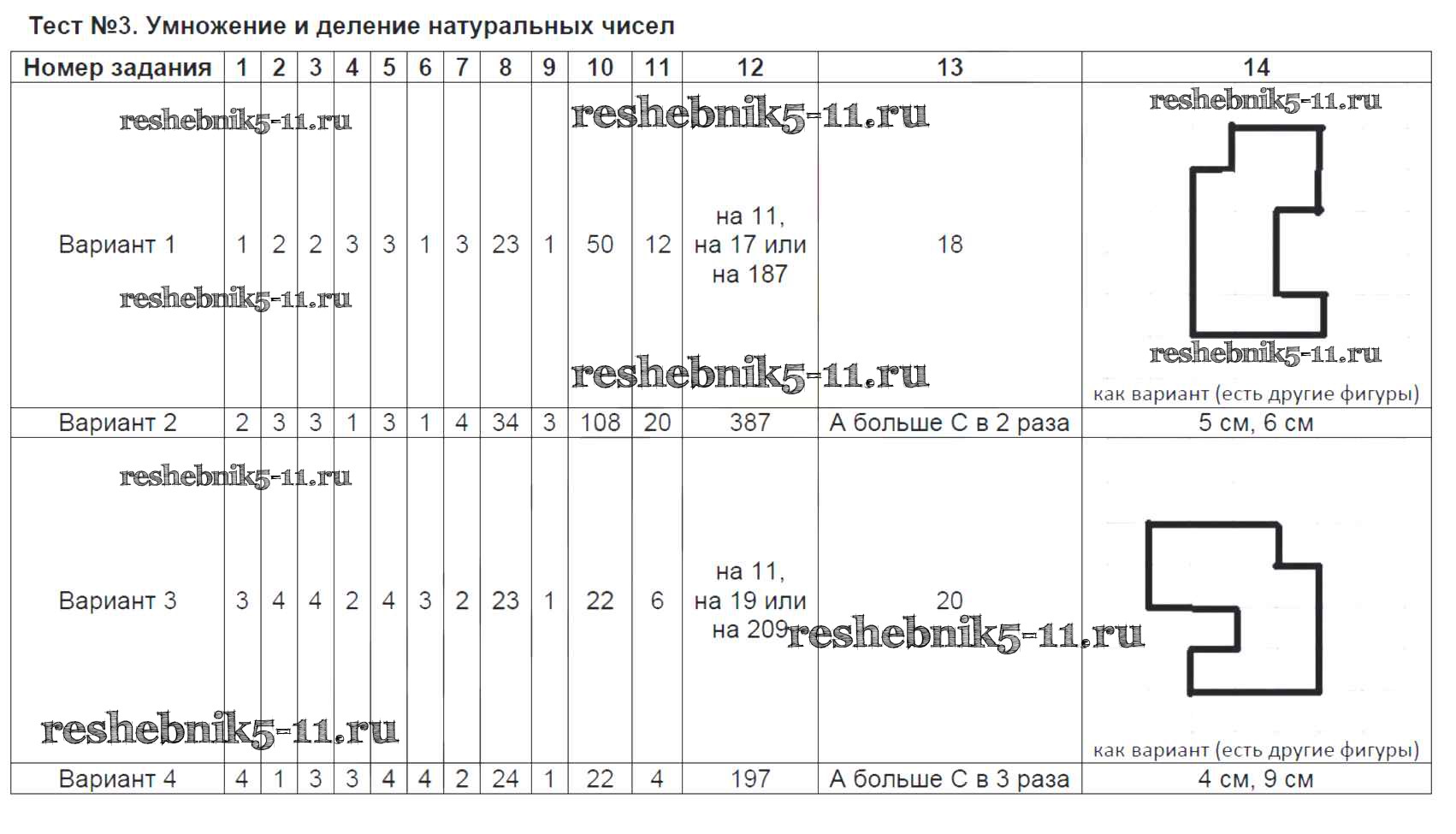 Готовая домашняя работа с ответами по Математике за 5 класс Ерина Тесты УМК Экзамен 2017 ФГОС - Тесты Тест №3. Умножение и деление натуральных чисел