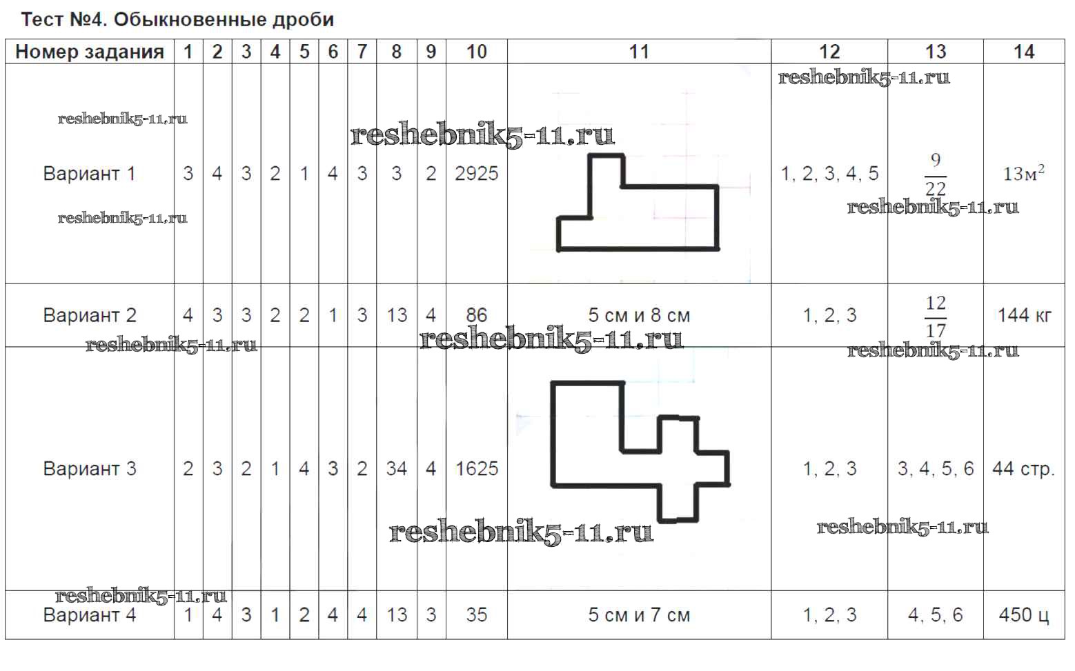 Готовая домашняя работа с ответами по Математике за 5 класс Ерина Тесты УМК Экзамен 2017 ФГОС - Тесты Тест №4. Обыкновенные дроби