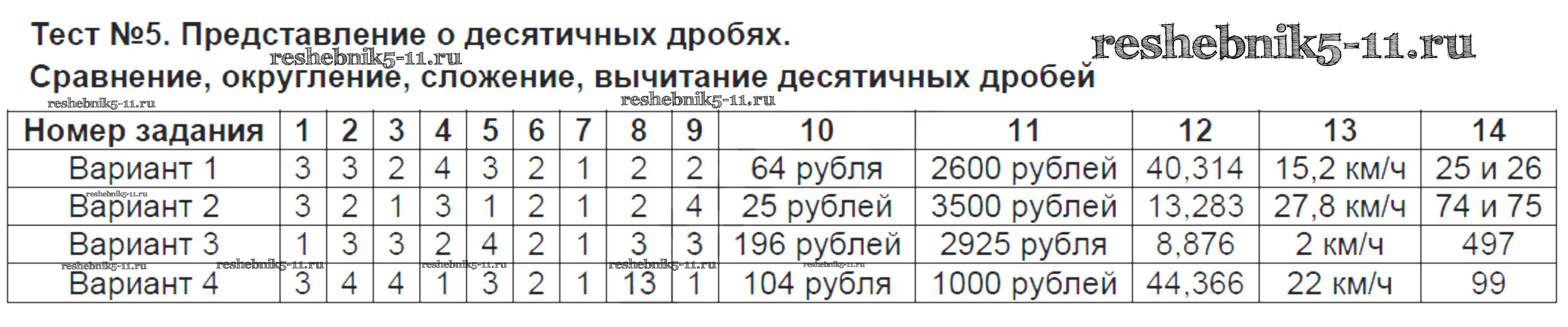 Готовая домашняя работа с ответами по Математике за 5 класс Ерина Тесты УМК Экзамен 2017 ФГОС - Тесты Тест №5. Представление о десятичных дробях