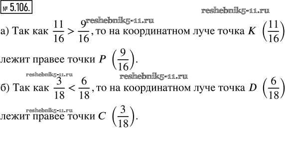 Готовая домашняя работа с ответами по Математике за 5 класс Виленкин, Жохов, Чесноков, Александрова, Шварцбурд Учебник Часть 2 Просвещение 2021 - Глава 5. Обыкновенные дроби 5.106