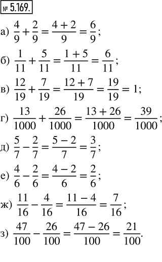 Готовая домашняя работа с ответами по Математике за 5 класс Виленкин, Жохов, Чесноков, Александрова, Шварцбурд Учебник Часть 2 Просвещение 2021 - Глава 5. Обыкновенные дроби 5.169