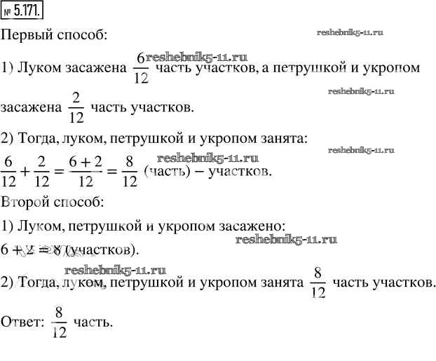 Готовая домашняя работа с ответами по Математике за 5 класс Виленкин, Жохов, Чесноков, Александрова, Шварцбурд Учебник Часть 2 Просвещение 2021 - Глава 5. Обыкновенные дроби 5.171