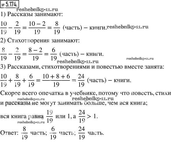 Готовая домашняя работа с ответами по Математике за 5 класс Виленкин, Жохов, Чесноков, Александрова, Шварцбурд Учебник Часть 2 Просвещение 2021 - Глава 5. Обыкновенные дроби 5.174