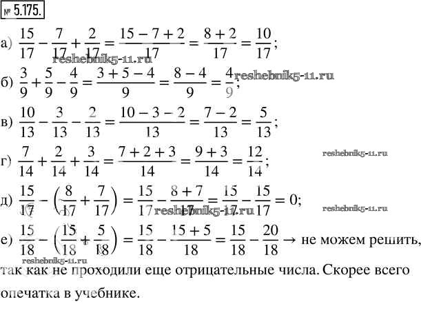 Готовая домашняя работа с ответами по Математике за 5 класс Виленкин, Жохов, Чесноков, Александрова, Шварцбурд Учебник Часть 2 Просвещение 2021 - Глава 5. Обыкновенные дроби 5.175