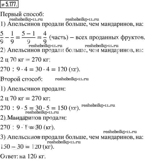 Готовая домашняя работа с ответами по Математике за 5 класс Виленкин, Жохов, Чесноков, Александрова, Шварцбурд Учебник Часть 2 Просвещение 2021 - Глава 5. Обыкновенные дроби 5.177