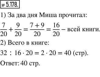 Готовая домашняя работа с ответами по Математике за 5 класс Виленкин, Жохов, Чесноков, Александрова, Шварцбурд Учебник Часть 2 Просвещение 2021 - Глава 5. Обыкновенные дроби 5.178