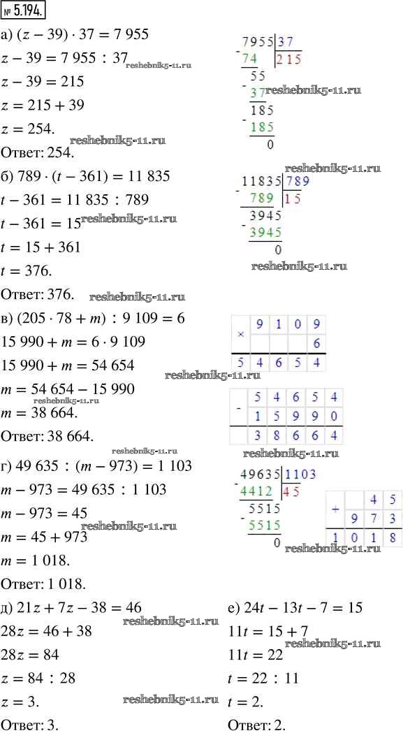 Математика за 5 класс Виленкин Учебник Просвещение глава 5 5.194