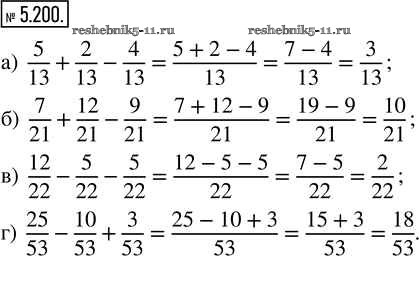 Готовая домашняя работа с ответами по Математике за 5 класс Виленкин, Жохов, Чесноков, Александрова, Шварцбурд Учебник Часть 2 Просвещение 2021 - Глава 5. Обыкновенные дроби 5.200