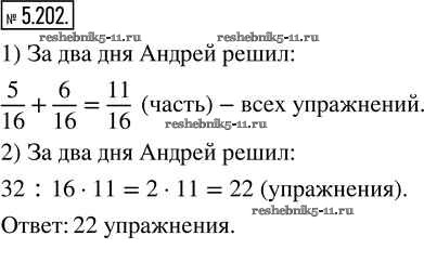 Готовая домашняя работа с ответами по Математике за 5 класс Виленкин, Жохов, Чесноков, Александрова, Шварцбурд Учебник Часть 2 Просвещение 2021 - Глава 5. Обыкновенные дроби 5.202