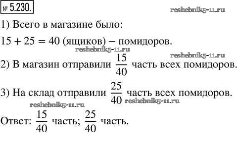 Готовая домашняя работа с ответами по Математике за 5 класс Виленкин, Жохов, Чесноков, Александрова, Шварцбурд Учебник Часть 2 Просвещение 2021 - Глава 5. Обыкновенные дроби 5.230