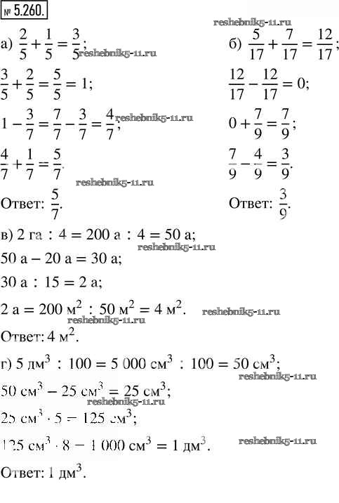 Готовая домашняя работа с ответами по Математике за 5 класс Виленкин, Жохов, Чесноков, Александрова, Шварцбурд Учебник Часть 2 Просвещение 2021 - Глава 5. Обыкновенные дроби 5.260