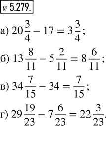 Готовая домашняя работа с ответами по Математике за 5 класс Виленкин, Жохов, Чесноков, Александрова, Шварцбурд Учебник Часть 2 Просвещение 2021 - Глава 5. Обыкновенные дроби 5.279