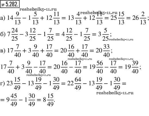 Готовая домашняя работа с ответами по Математике за 5 класс Виленкин, Жохов, Чесноков, Александрова, Шварцбурд Учебник Часть 2 Просвещение 2021 - Глава 5. Обыкновенные дроби 5.282