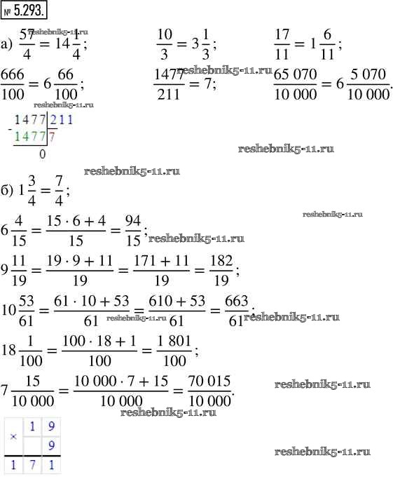 Готовая домашняя работа с ответами по Математике за 5 класс Виленкин, Жохов, Чесноков, Александрова, Шварцбурд Учебник Часть 2 Просвещение 2021 - Глава 5. Обыкновенные дроби 5.293