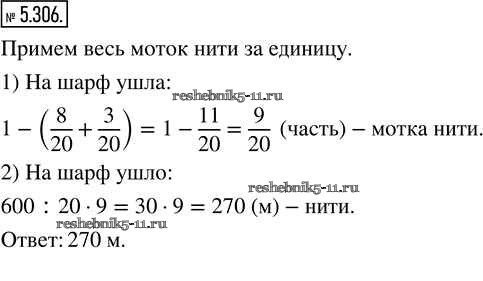 Готовая домашняя работа с ответами по Математике за 5 класс Виленкин, Жохов, Чесноков, Александрова, Шварцбурд Учебник Часть 2 Просвещение 2021 - Глава 5. Обыкновенные дроби 5.306