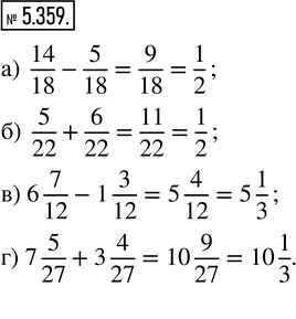 Готовая домашняя работа с ответами по Математике за 5 класс Виленкин, Жохов, Чесноков, Александрова, Шварцбурд Учебник Часть 2 Просвещение 2021 - Глава 5. Обыкновенные дроби 5.359