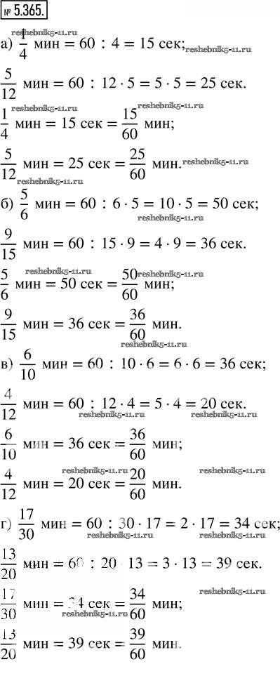 Готовая домашняя работа с ответами по Математике за 5 класс Виленкин, Жохов, Чесноков, Александрова, Шварцбурд Учебник Часть 2 Просвещение 2021 - Глава 5. Обыкновенные дроби 5.365