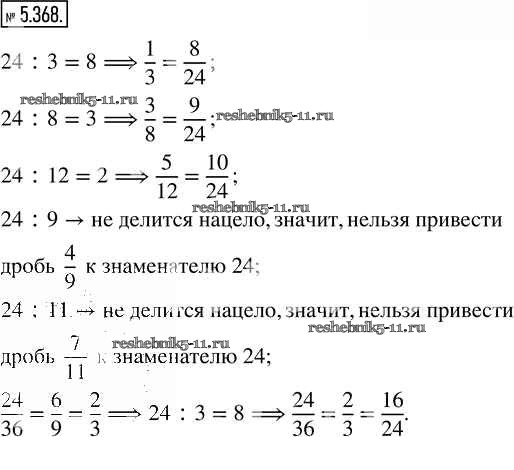 Готовая домашняя работа с ответами по Математике за 5 класс Виленкин, Жохов, Чесноков, Александрова, Шварцбурд Учебник Часть 2 Просвещение 2021 - Глава 5. Обыкновенные дроби 5.368