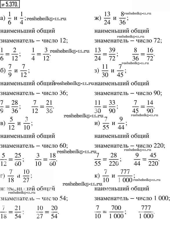 Готовая домашняя работа с ответами по Математике за 5 класс Виленкин, Жохов, Чесноков, Александрова, Шварцбурд Учебник Часть 2 Просвещение 2021 - Глава 5. Обыкновенные дроби 5.370