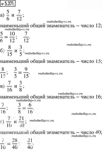Готовая домашняя работа с ответами по Математике за 5 класс Виленкин, Жохов, Чесноков, Александрова, Шварцбурд Учебник Часть 2 Просвещение 2021 - Глава 5. Обыкновенные дроби 5.371