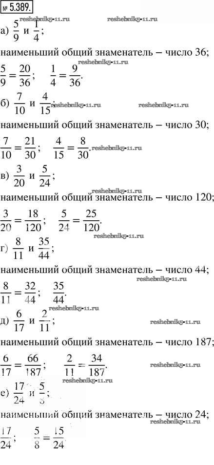 Готовая домашняя работа с ответами по Математике за 5 класс Виленкин, Жохов, Чесноков, Александрова, Шварцбурд Учебник Часть 2 Просвещение 2021 - Глава 5. Обыкновенные дроби 5.389