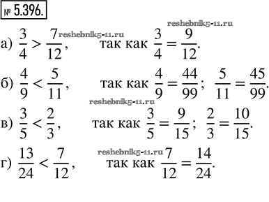 Готовая домашняя работа с ответами по Математике за 5 класс Виленкин, Жохов, Чесноков, Александрова, Шварцбурд Учебник Часть 2 Просвещение 2021 - Глава 5. Обыкновенные дроби 5.396