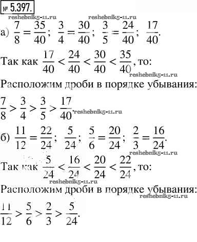 Готовая домашняя работа с ответами по Математике за 5 класс Виленкин, Жохов, Чесноков, Александрова, Шварцбурд Учебник Часть 2 Просвещение 2021 - Глава 5. Обыкновенные дроби 5.397