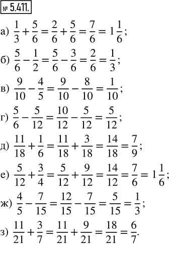 Готовая домашняя работа с ответами по Математике за 5 класс Виленкин, Жохов, Чесноков, Александрова, Шварцбурд Учебник Часть 2 Просвещение 2021 - Глава 5. Обыкновенные дроби 5.411