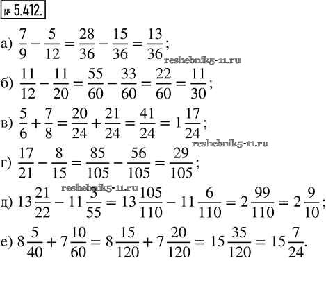Готовая домашняя работа с ответами по Математике за 5 класс Виленкин, Жохов, Чесноков, Александрова, Шварцбурд Учебник Часть 2 Просвещение 2021 - Глава 5. Обыкновенные дроби 5.412
