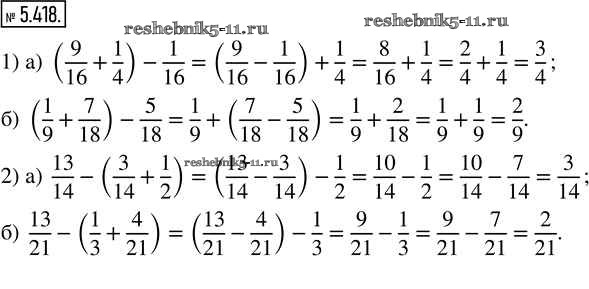 Готовая домашняя работа с ответами по Математике за 5 класс Виленкин, Жохов, Чесноков, Александрова, Шварцбурд Учебник Часть 2 Просвещение 2021 - Глава 5. Обыкновенные дроби 5.418