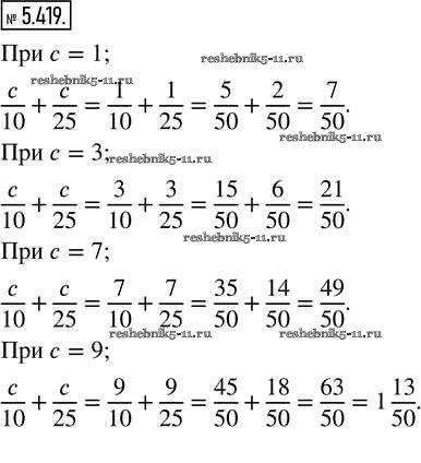 Готовая домашняя работа с ответами по Математике за 5 класс Виленкин, Жохов, Чесноков, Александрова, Шварцбурд Учебник Часть 2 Просвещение 2021 - Глава 5. Обыкновенные дроби 5.419
