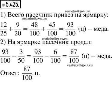Готовая домашняя работа с ответами по Математике за 5 класс Виленкин, Жохов, Чесноков, Александрова, Шварцбурд Учебник Часть 2 Просвещение 2021 - Глава 5. Обыкновенные дроби 5.425