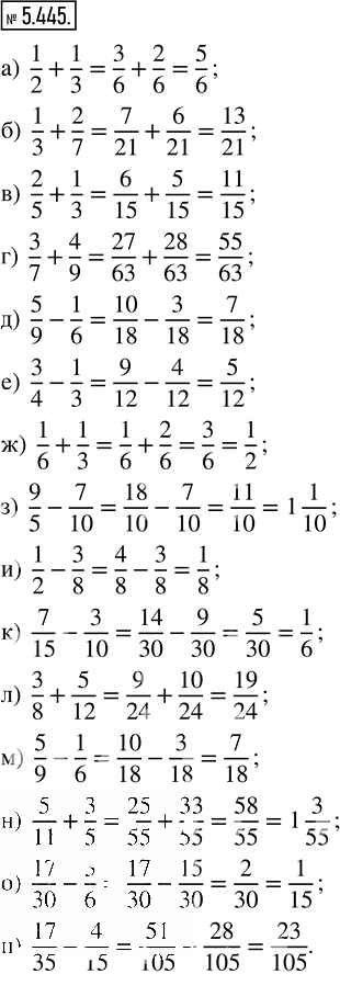 Готовая домашняя работа с ответами по Математике за 5 класс Виленкин, Жохов, Чесноков, Александрова, Шварцбурд Учебник Часть 2 Просвещение 2021 - Глава 5. Обыкновенные дроби 5.445