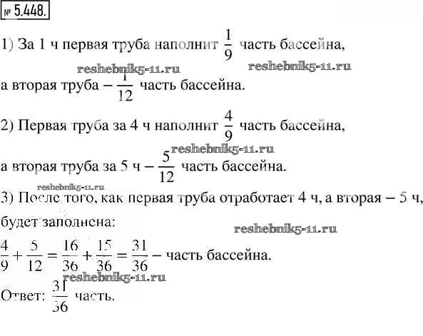 Готовая домашняя работа с ответами по Математике за 5 класс Виленкин, Жохов, Чесноков, Александрова, Шварцбурд Учебник Часть 2 Просвещение 2021 - Глава 5. Обыкновенные дроби 5.448