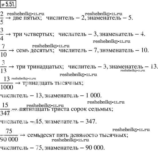 Готовая домашняя работа с ответами по Математике за 5 класс Виленкин, Жохов, Чесноков, Александрова, Шварцбурд Учебник Часть 2 Просвещение 2021 - Глава 5. Обыкновенные дроби 5.51