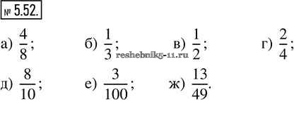 Готовая домашняя работа с ответами по Математике за 5 класс Виленкин, Жохов, Чесноков, Александрова, Шварцбурд Учебник Часть 2 Просвещение 2021 - Глава 5. Обыкновенные дроби 5.52
