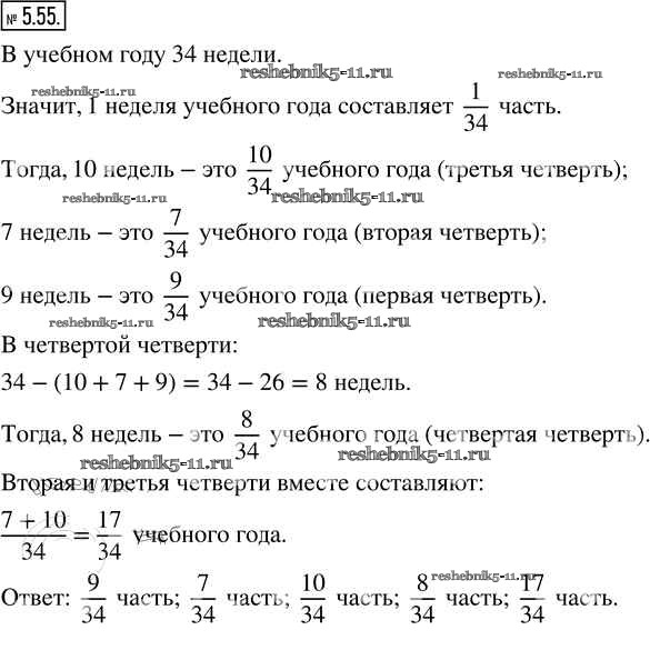 Готовая домашняя работа с ответами по Математике за 5 класс Виленкин, Жохов, Чесноков, Александрова, Шварцбурд Учебник Часть 2 Просвещение 2021 - Глава 5. Обыкновенные дроби 5.55
